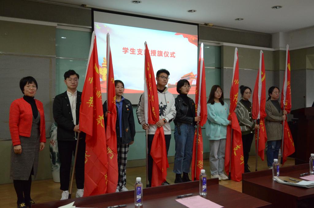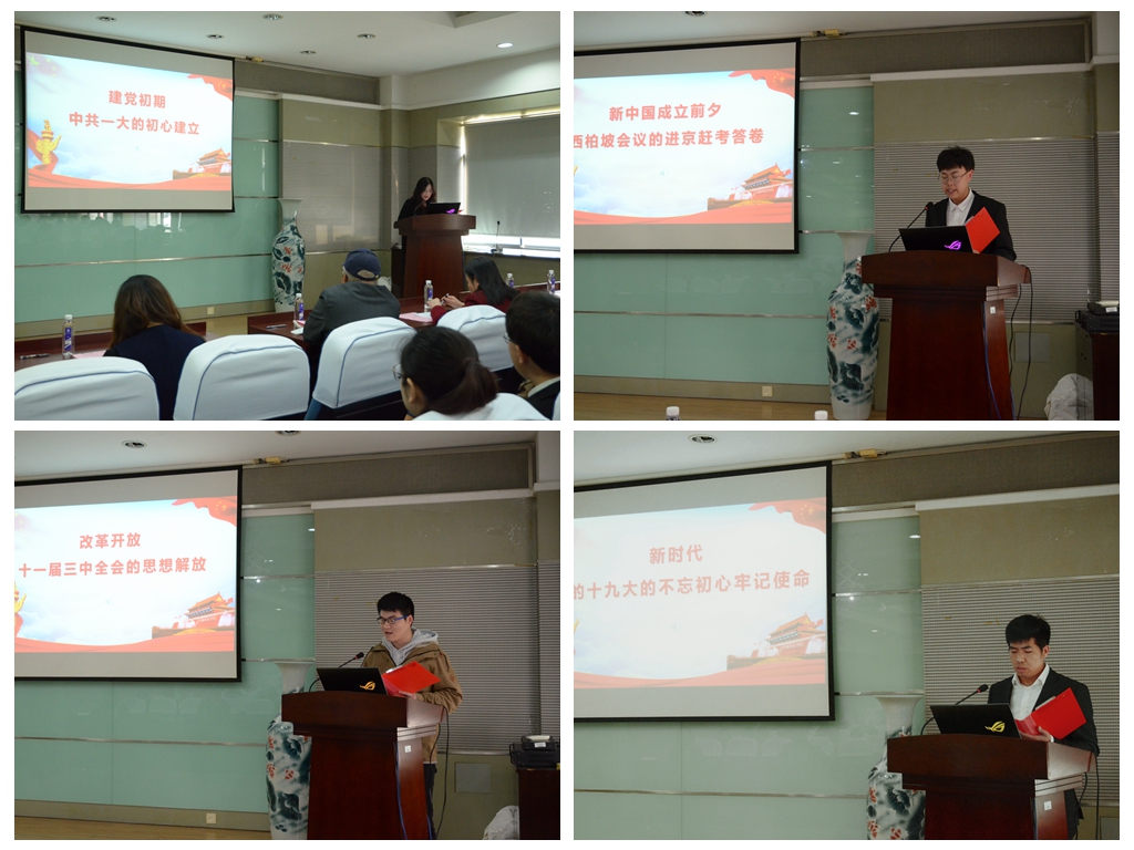 五位学生代表进行了党史学习分享。同学们通过讲述党的中共一大、遵义会议、西柏坡会议、十一届三中全会、党的十九大,五个历史上重要节点召开的会议,声情并茂地展现了党在历史关键时期所做的正确决策。广大党员、干部只有深入学习党史、新中国史、改革开放史,才能让初心薪火相传,把使命永担在肩。学生党员代表王心怡围绕党的发展史、青年党员的责任担当做主题发言。活动中还举行了学生党支部授旗和教授工作室授牌仪式。