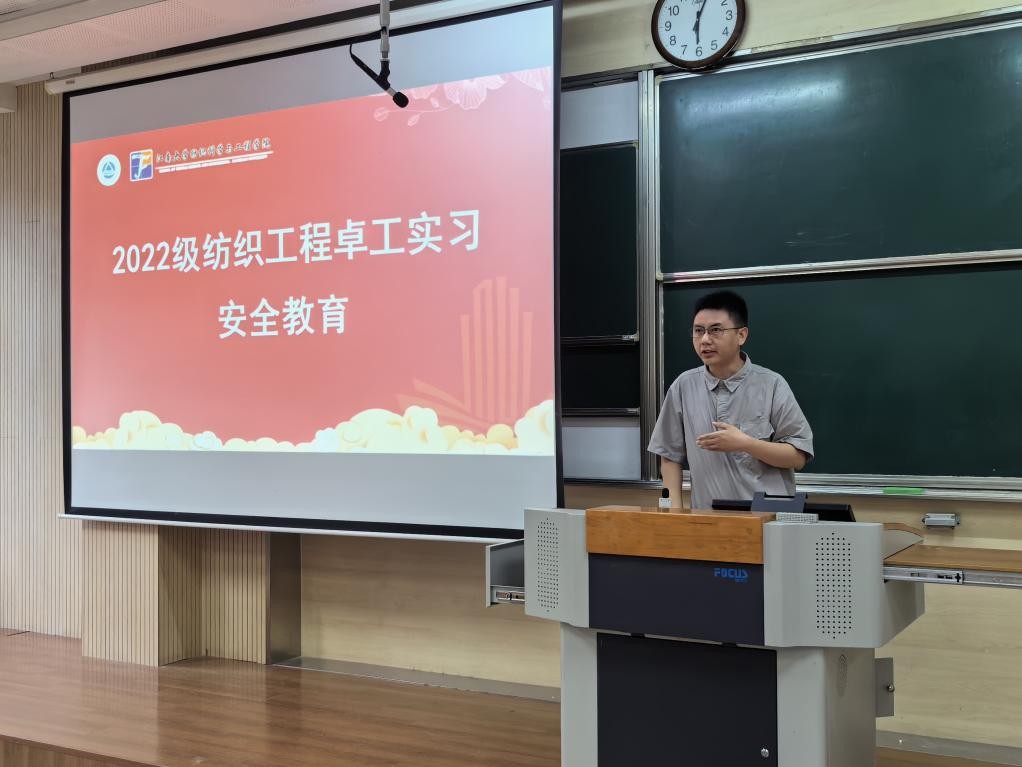 在一教楼1B103开展纺织工程22级学生“卓工实习”安全教育。91在线