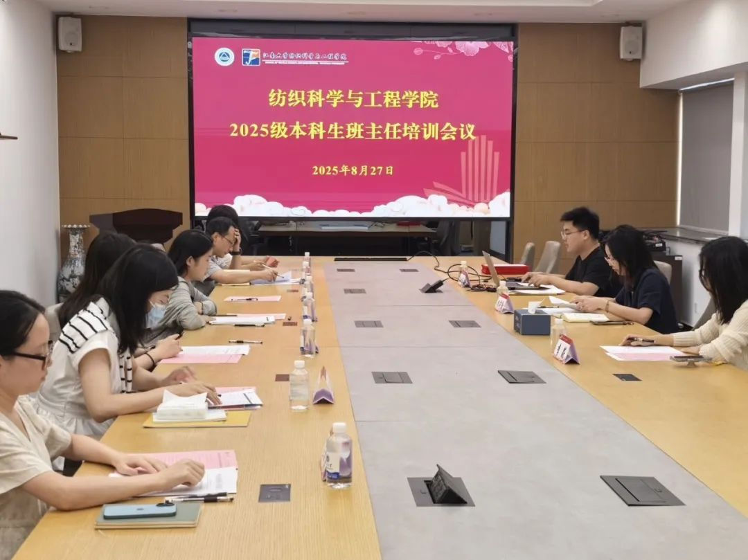 召开2025级本科生班主任培训会议。学院党委副书记、副院长杨莉勤,优秀班主任代表、纺织(创新班)2401班班主任李蔚,2025级本科生辅导员孙洲龙,全体2025级本科生班主任及副班主任参加会议。