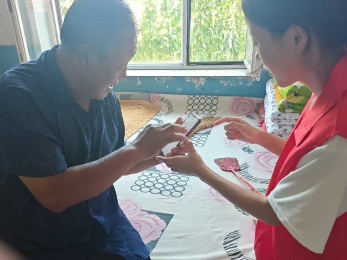 晏晴同学奔赴内蒙古元宝山镇南荒村委会,敏锐捕捉老年群体“数字鸿沟”这一热点,于社区开设智能手机课堂,悉心教导老人使用微信、预约挂号等功能,还主动陪伴照料,以真诚之举为镇里老人送去温暖,让为老助残的温情不断传递。