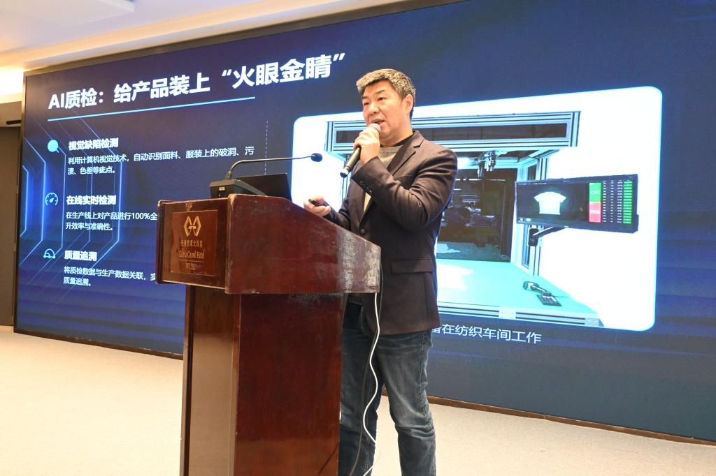 在纺织智能制造、数字化设计与产教融合方面的探索成果,强调纺织行业数字化转型离不开信息技术与产业场景的深度融合,并期待与信息专业委员会在人才培养、科研创新等方面开展深度合作。