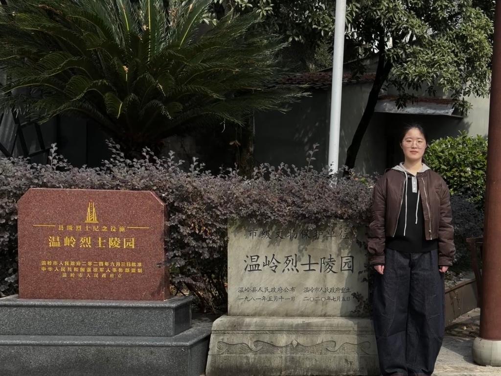 彭懿轩同学奔赴浙江省温岭市,走进温岭烈士陵园,庄严肃穆的氛围让人心生敬畏。烈士纪念馆前的革命壁画与群雕,定格了先烈们高举红旗、奋勇冲锋的身影,让她深刻懂得今日和平生活的珍贵。彭懿轩同学认为,“同心固边” 不仅是守护疆土,更是传承红色基因、凝聚民族力量,今后将以先烈为榜样,把爱国情、强国志、报国行融入日常,守护家国安宁。