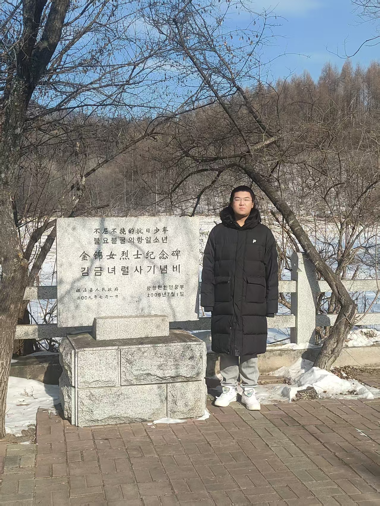 赵国栋同学前往吉林省小汪清抗日基地,在童长荣、崔今淑烈士雕像与金锦女烈士纪念碑前,重温东北抗日联军的英勇事迹。在严寒的自然环境和残酷的战争条件下,先烈们不屈不挠、前仆后继,为民族解放献出宝贵生命,这让他深受触动。他表示,新时代青年当铭记历史,传承先烈的爱国精神,以脚踏实地的努力,为国家繁荣发展添砖加瓦。
