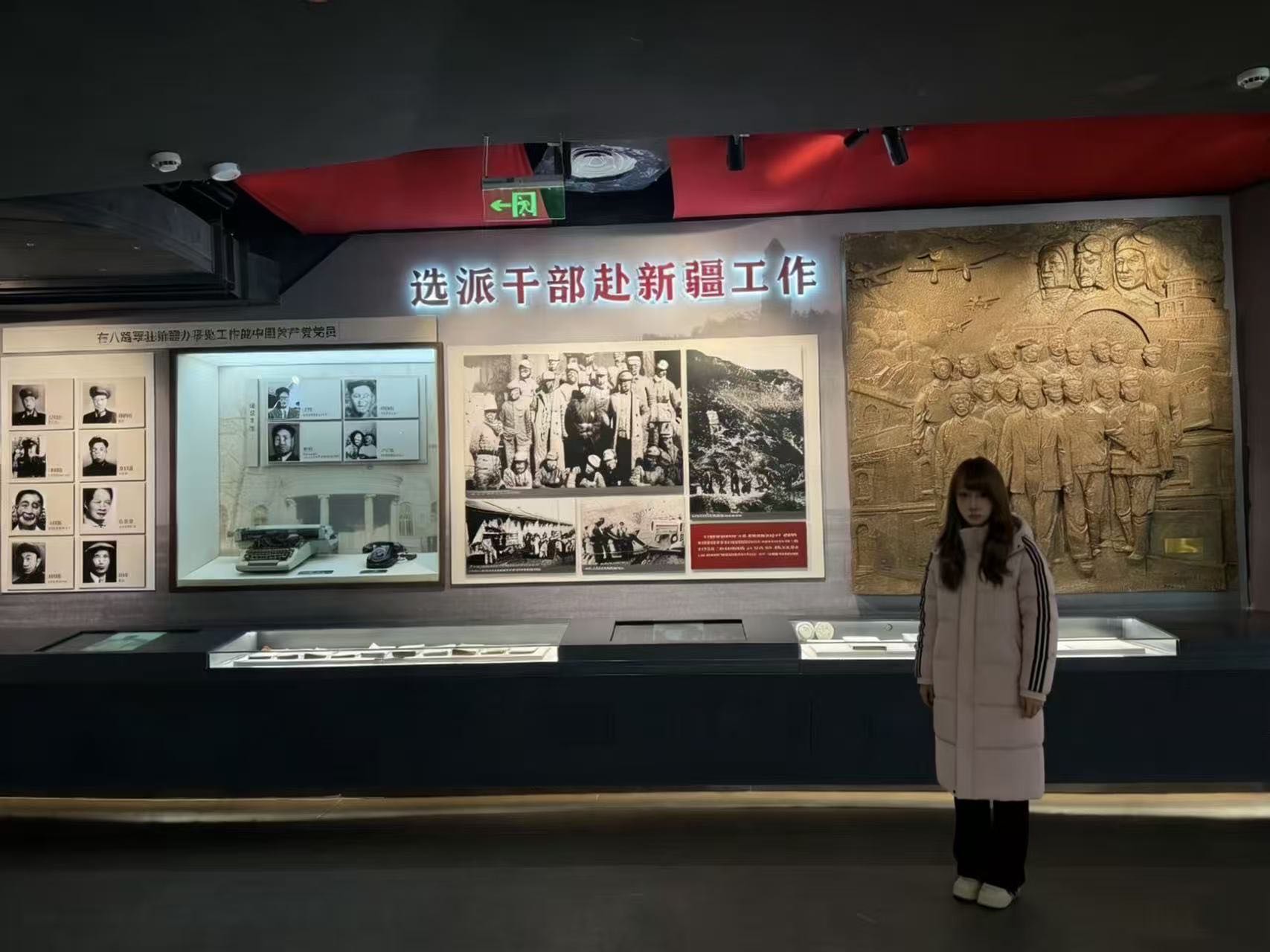 刘颖颖同学来到家乡甘肃省靖远县红军渡河战役纪念馆。馆内的历史照片与珍贵文物,再现了红军强渡黄河的壮举和当地民众抗日救亡的热血历史。她从先辈艰苦守家的故事中领悟到,红色基因蕴含的不畏艰难、勇于奉献,与纺织人“经天纬地、精益求精”的精神一脉相承。作为纺织学子,她深知革命年代纺织工人的奉献,决心用科技赋能纺织产业,将精神力量转化为学习动力,争做兼具家国情怀与专业素养的新时代纺织人。
