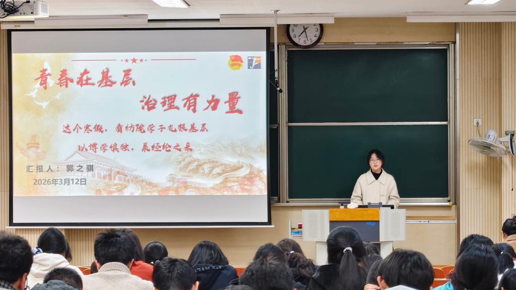 学工办主任兼分团委书记任学敏、2025级本科生辅导员孙洲龙、2026年寒假社会实践各院级重点团队代表及2025级全体本科生参与此次活动,会议由学院学生会团委通讯社胡婧文淇主持。